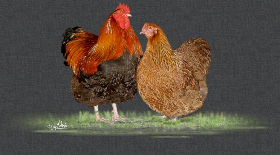 goldbraun. Halsbehang goldfarbig bis goldrot. Jede Feder mit mehrfacher